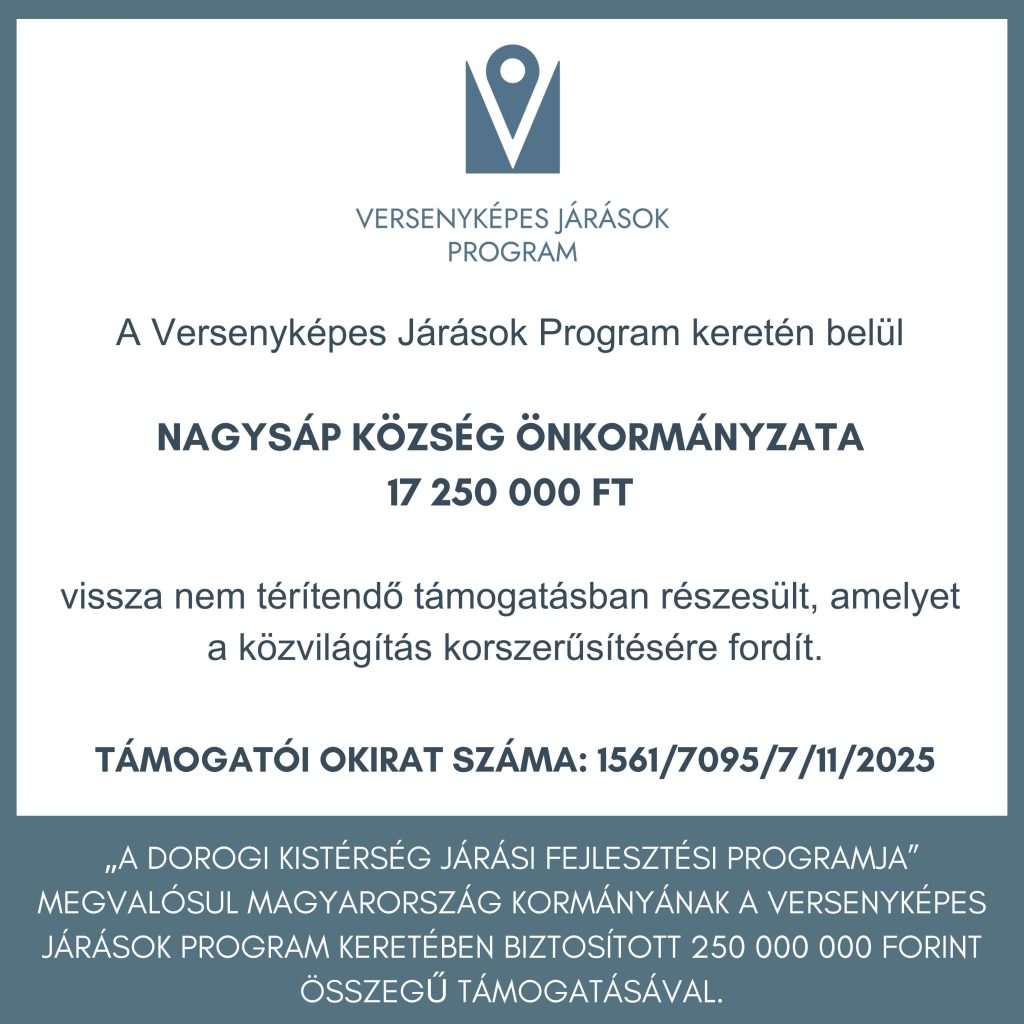Pályázati tájékoztató Az alábbi oldalon tájékoztatjuk Nagysáp Község Úniós forrásokból megvalósuló fejlesztéseiről, azok feltételeiről, illetve a beruházásokkal kapcsolatos információkról. Nagysáp...